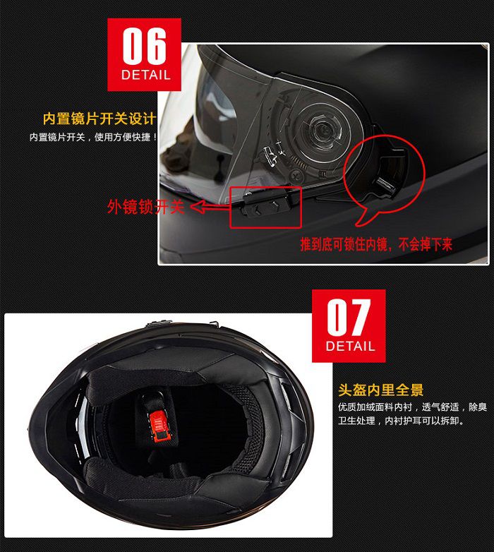 Sự tiện dụng của sản phẩm này còn thể hiện ở việc sử dụng 2 lớp kính, vừa đảm bảo an toàn cho phần mặt và vừa tạo cảm giác thoải mái dễ chịu khi có kính râm bên trong chống lóa hoàn hảo.